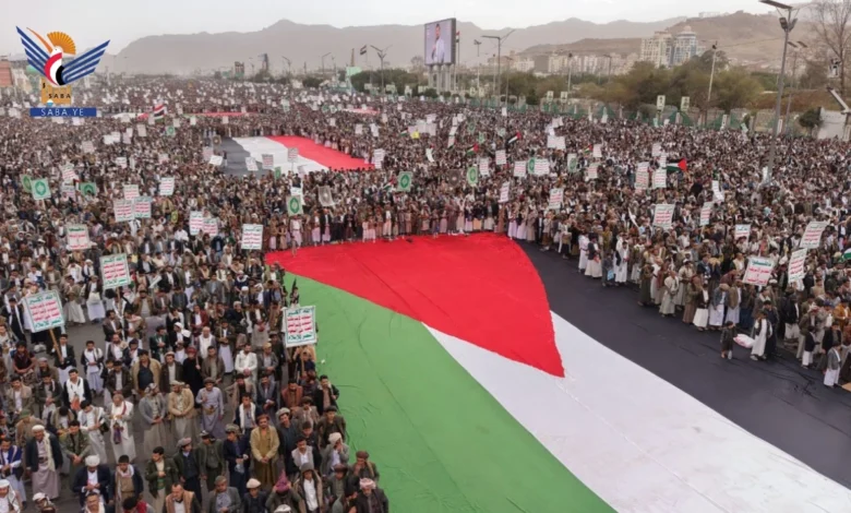 الشعب اليمني يجدد التأكيد على دعمه للشعب الفلسطيني وجهوزيته الكاملة لمواجهة الأعداء