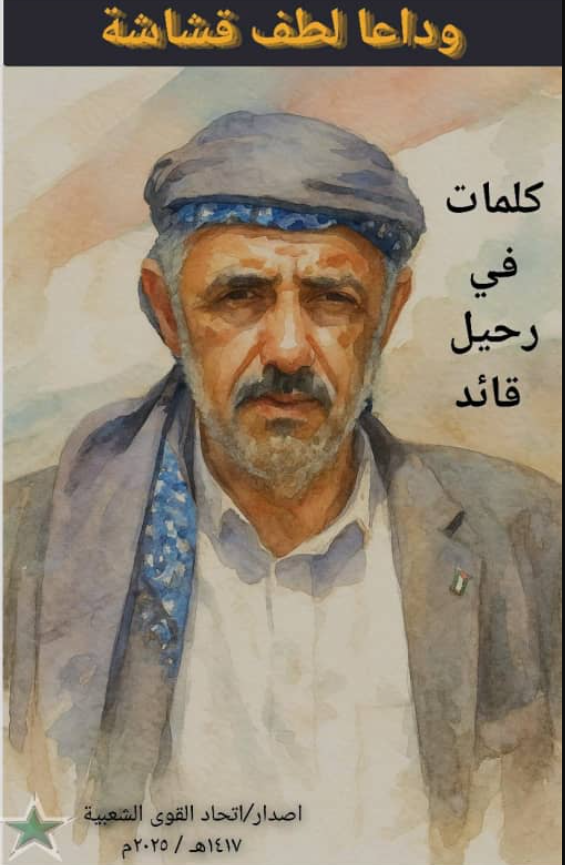 صدر مؤخرًا عن الأمانة العامة لاتحاد القوى الشعبية اليمنية كتاب بعنوان: “وداعًا لطف قشاشة.. كلمات في رحيل قائد”، وذلك بمناسبة أربعينية فقيد الاتحاد والوطن الأستاذ لطف بن لطف قشاشة، نائب الأمين العام للاتحاد.