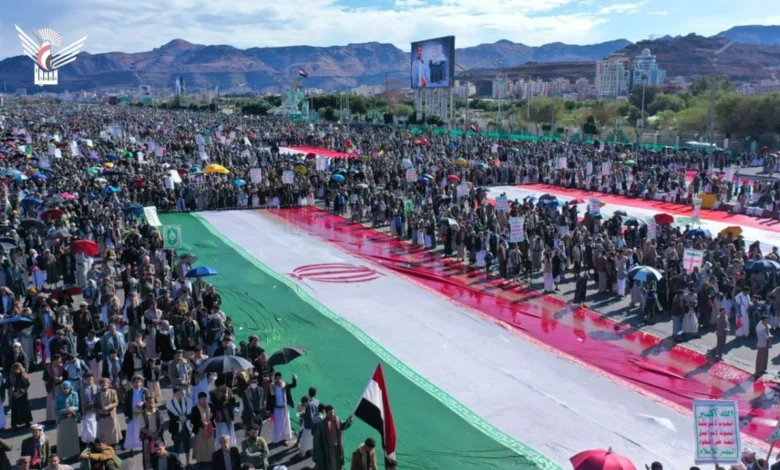 الشعب اليمني يجدد التأكيد بالوقوف إلى جانب فلسطين ولبنان وإيران في مواجهة الغطرسة الأمريكية الإسرائيلية