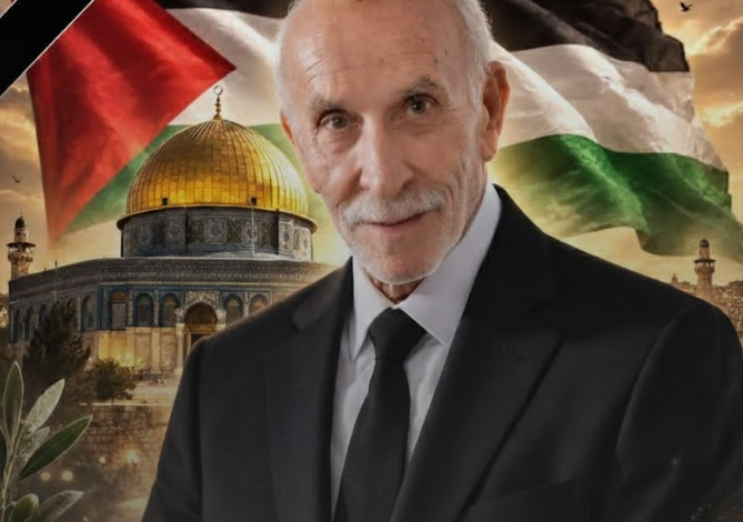 والذي كرس حياته دفاعاً عن حقوق شعبه وقضيته القضية الفلسطينية العربية والاسلامية العادلة، وعمل بإخلاصٍ في صفوف جبهة النضال الشعبي الفلسطيني، متمسكاً بخيار النضال حتى آخر أيام حياته.