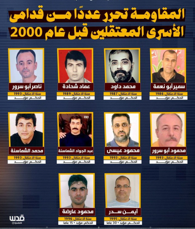 وأفاد مدير إعلام مكتب الأسرى بأنه سيتم إطلاق عدد من الأسرى المعتقلين في سجون الاحتلال منذ عقود، وسيتم إبعاد 154 أسيراً فلسطينياً محرراً.