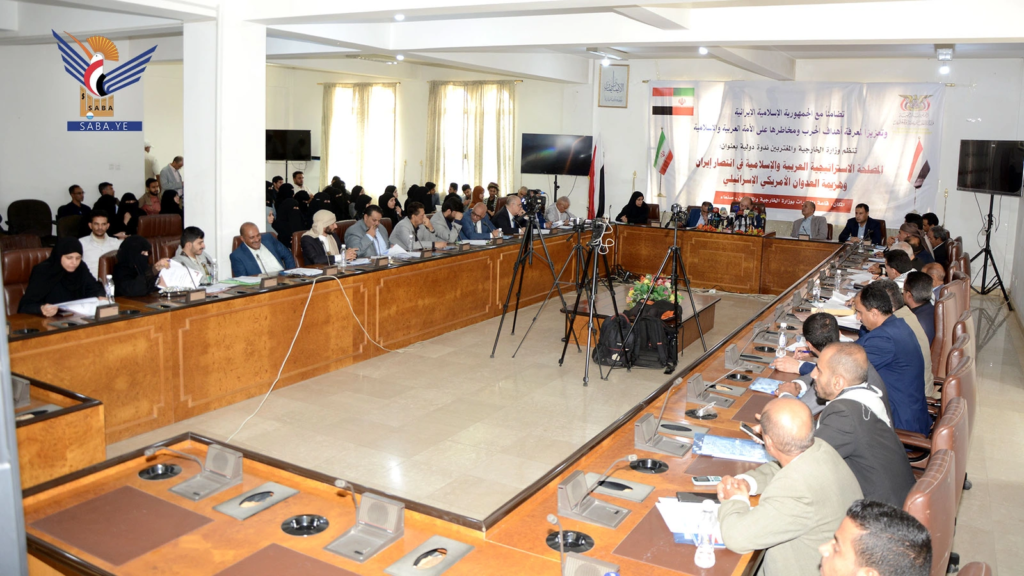 عُقدت بصنعاء اليوم، ندوة دولية بعنوان “المصلحة الاستراتيجية العربية والإسلامية في انتصار إيران وهزيمة العدوان الأمريكي الإسرائيلي”، نظمتها وزارة الخارجية والمغتربين تضامناً مع الجمهورية الإسلامية في إيران، وتعزيزًا لمعرفة أهداف الحرب ومخاطرها على الأمة العربية والإسلامية.